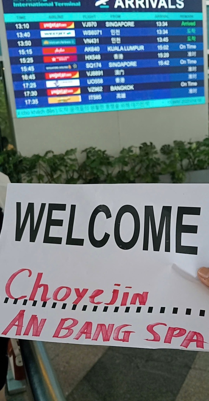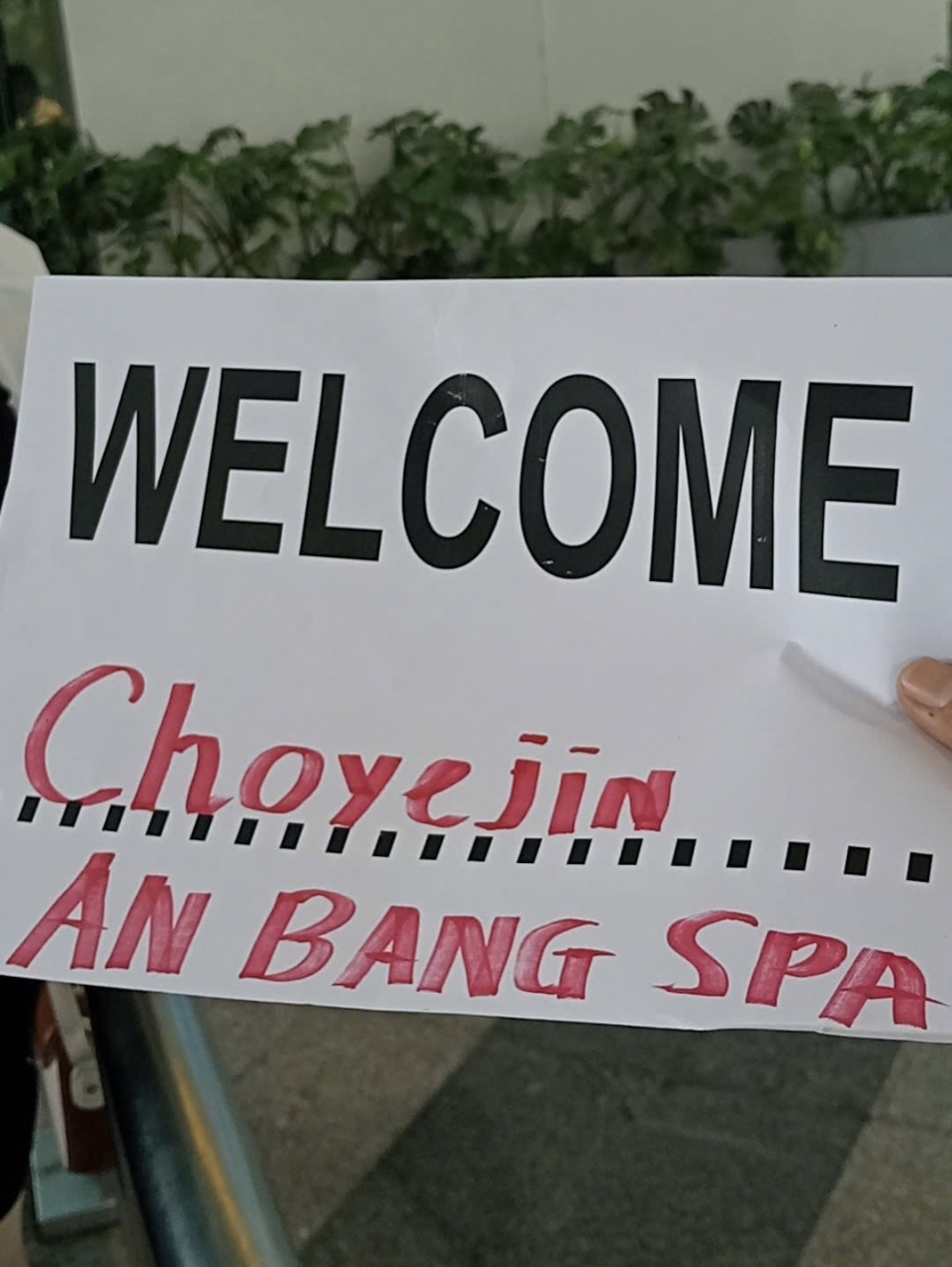 안방스파 기사님은 공항 도착 게이트 앞에서 고객님의 이름이 적힌 웰컴 보드를 들고 기다리고 있었습니다.
