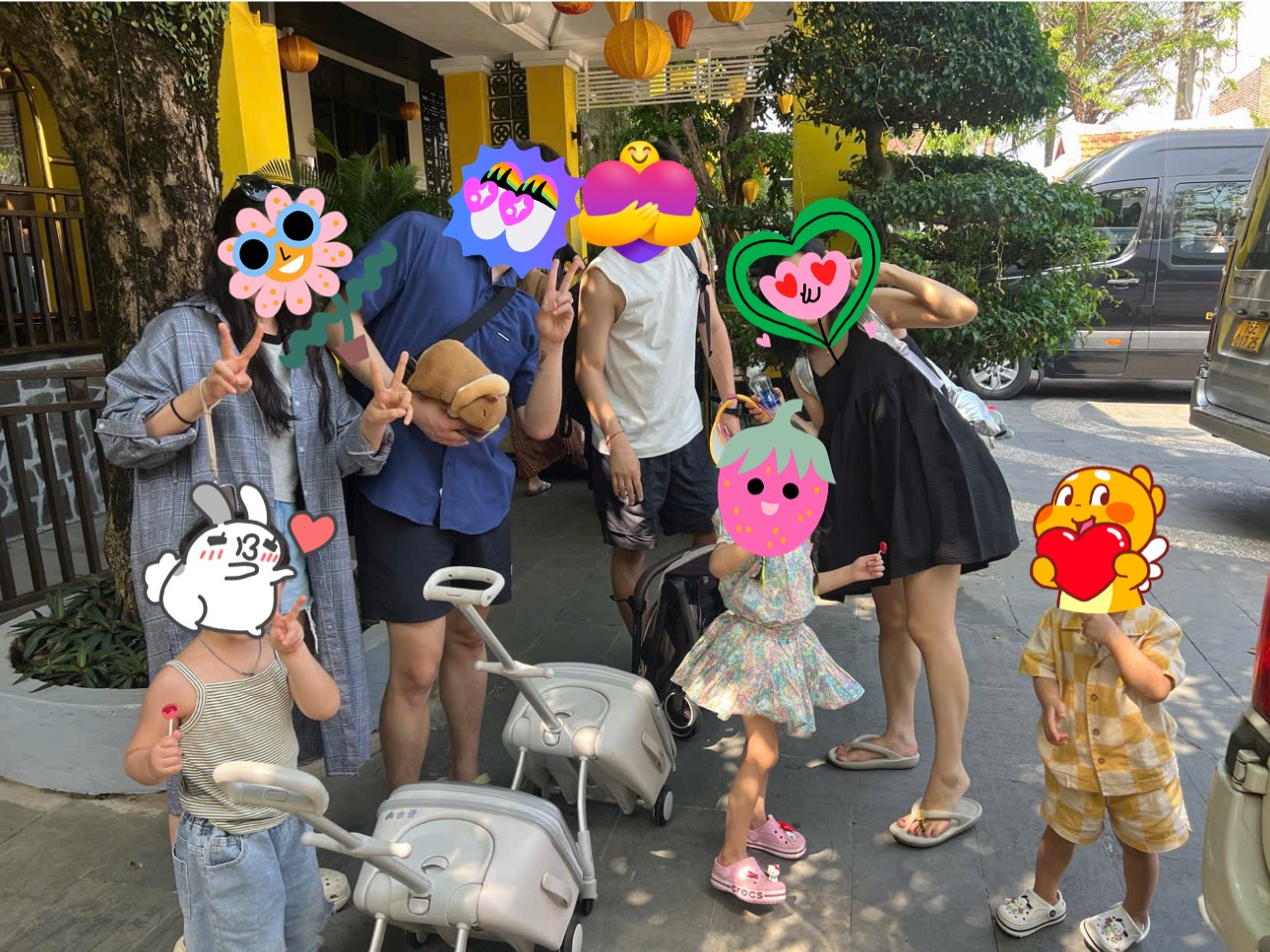 큰 캐리어와 귀여운 아이들까지, 여행 중에도 편하게 힐링하고 싶은 마음이 느껴지는 순간이었어요.